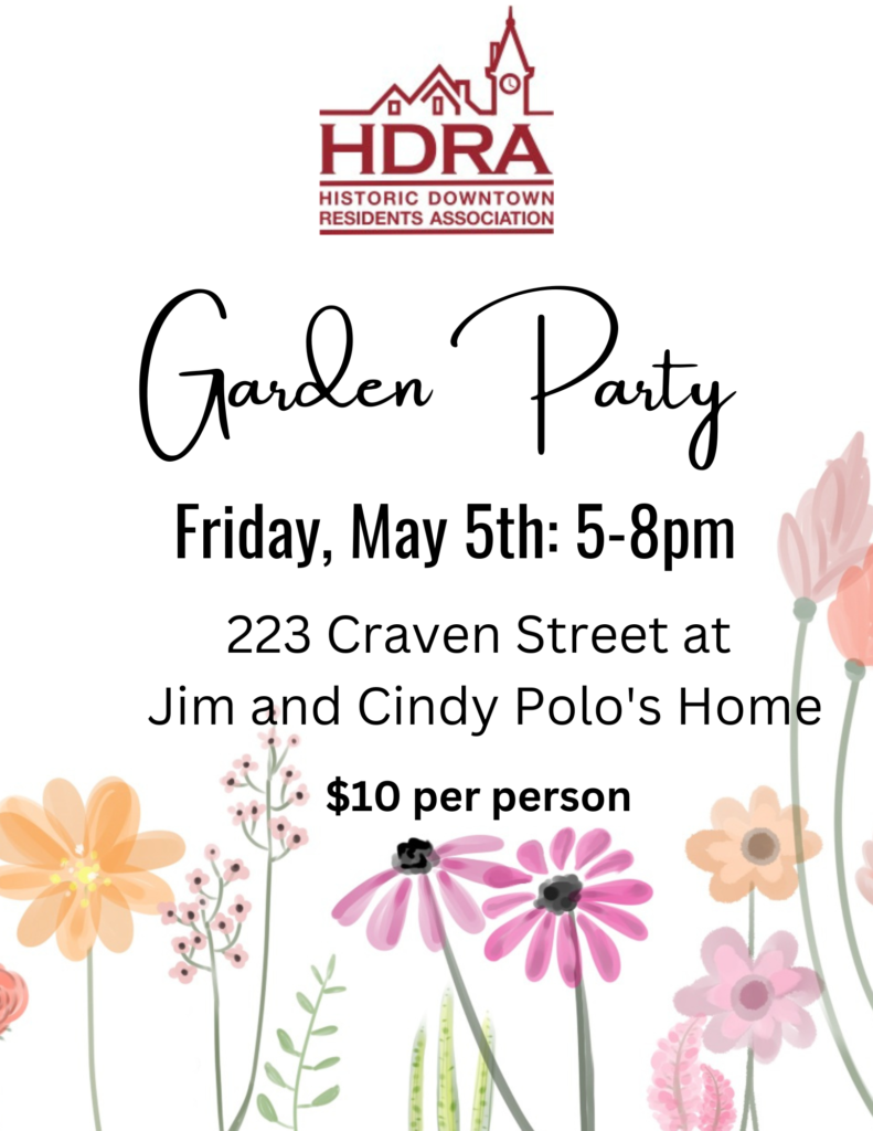 The Historic Downtown Residents Association (HDRA) invites members and friends to join us for a Happy Hour Pop-Up at Brewery 99 on Wednesday, March 18, 2026. This informal gathering is a great opportunity to relax, connect with neighbors, and enjoy a casual evening together in downtown New Bern. Event details: No program or formal agenda—just […]