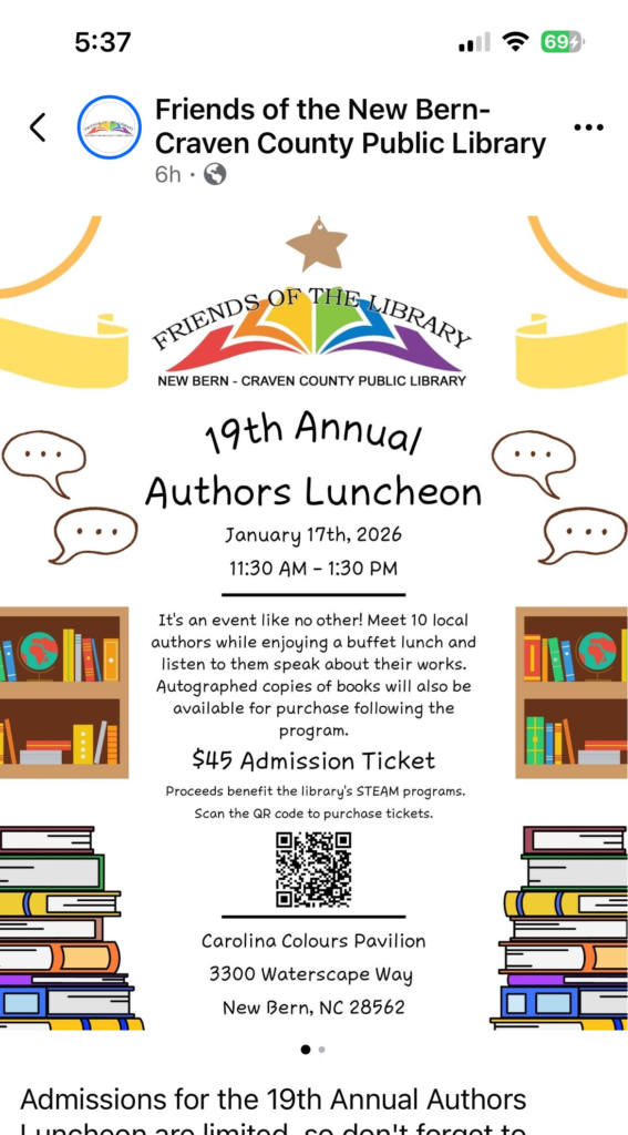 Proceeds from this event benefit STEAM programs at the New Bern-Craven County Public Library.