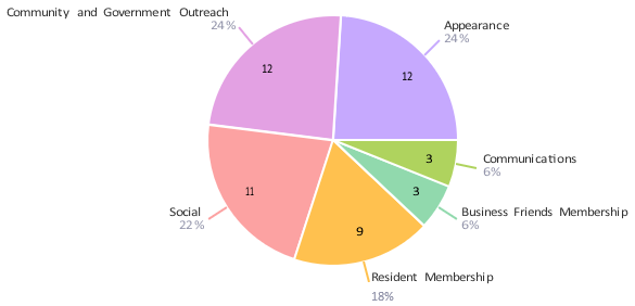 Finding members to volunteer and sustain HDRA committees ensures we continue to advance our mission. The survey revealed general membership interests: Appearance/Preservation (24%), Community and Government Outreach (24%), Social (22%), Resident Membership (18 %), Business Friends (6%) and Communications (6%).   Based on this data provided by our members, the Board of Directors plans to actively extend the opportunity to serve on these committees.